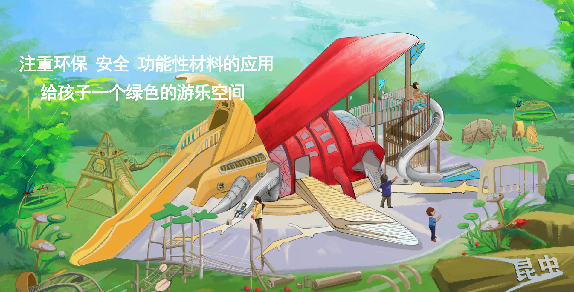 兒童組合滑梯可以從各個方位爬上中心平臺,再沿著多個滑梯、滑筒...